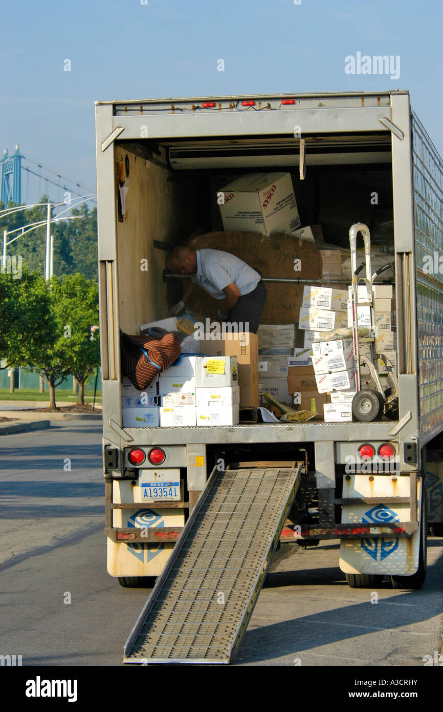 Truck Driver Unloading A Truckload Ofrestaurant Supplies Stock Photo Alamy